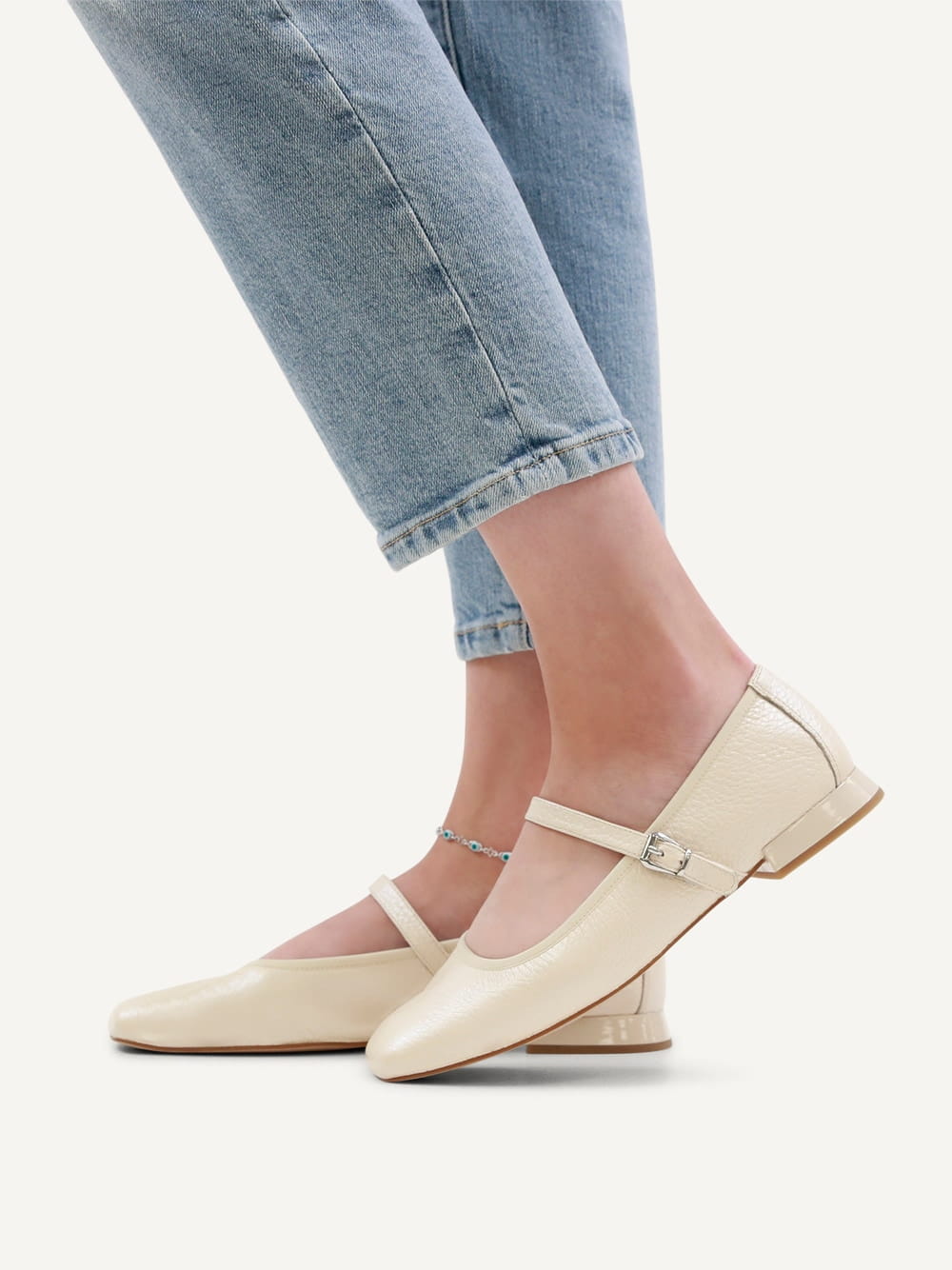 Baleriny kremowe Vanny ze skóry jelenia [22100-44-110]